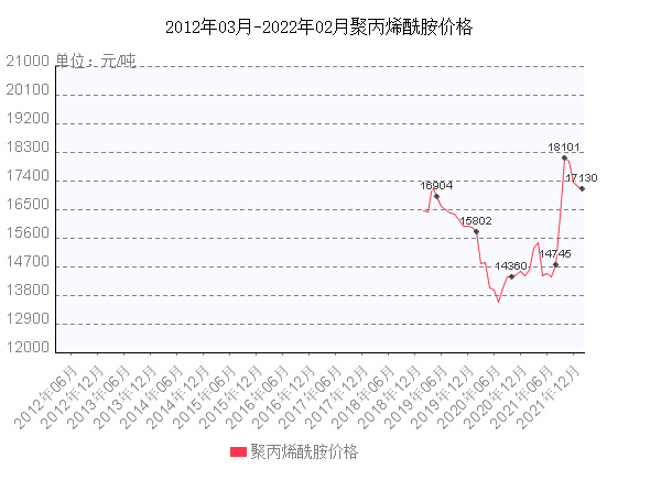 聚丙烯酰胺價(jià)格走勢(shì)圖,聚丙烯酰胺價(jià)格是根據(jù)其型號(hào)、指標(biāo)而定的,按照離子型分為:陽(yáng)離子、陰離子、非離子,三者對(duì)比價(jià)格陰離子比較便宜陽(yáng)離子相對(duì)較貴。